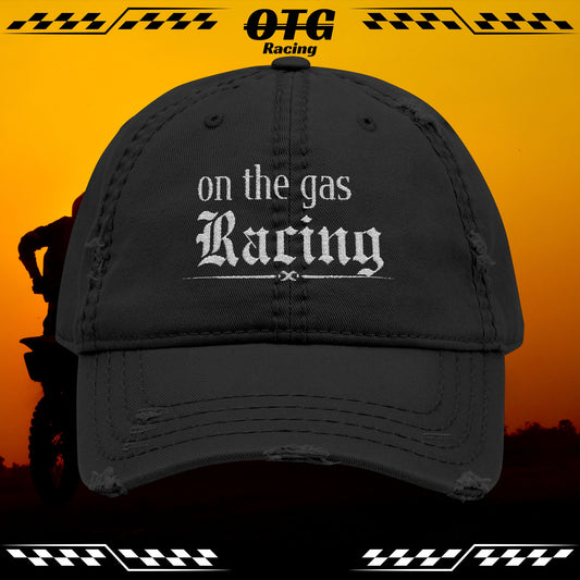 Distressed Dad Cap - 'On the Gas Racing' Grunge Embroidered